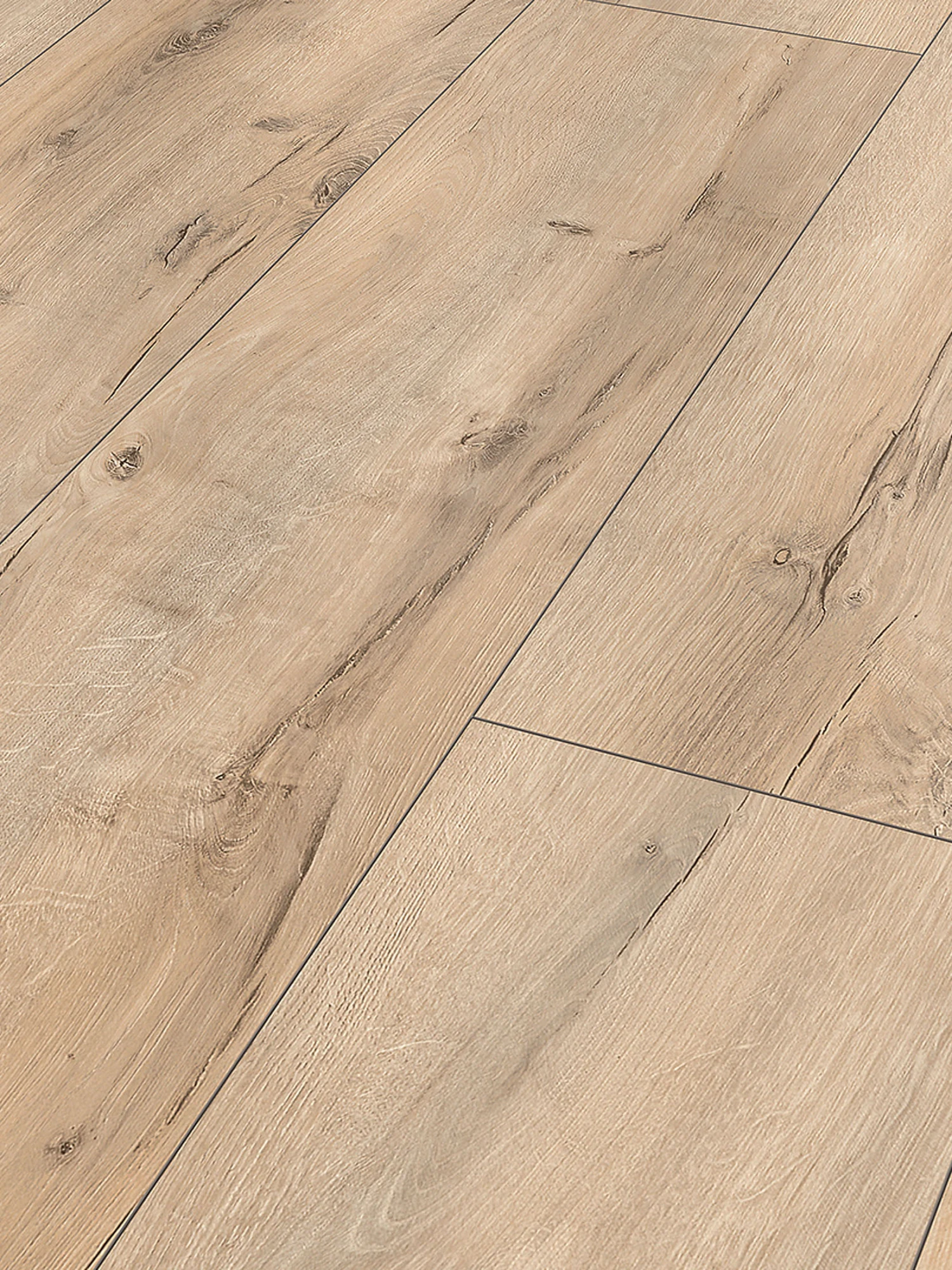 Die authentisch geprägte Oberflächenstruktur mit der dezenten Holzmaserung verstärkt die natürliche Optik dieses Landhausdielenbodens. Er hat eine Stärke von ca. 8 mm, eine Abriebgarantie von 25 Jahren und eignet sich damit für den Einsatz im gesamten Wohnbereich. Das Klicksystem erlaubt zudem ein schnelles und einfaches Verlegen. Nutzungsklasse 23/32, Stärke ca. 8 mm, Maße ca. 1285/280 mm.